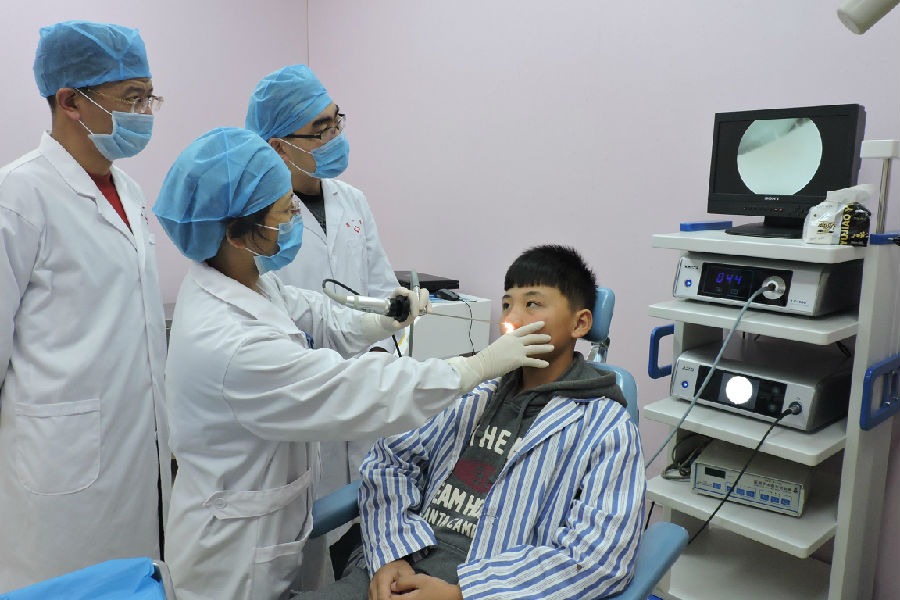 徐进教授为过敏性鼻炎患者进行检查治疗