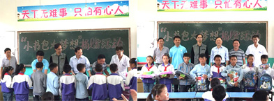 我们希望所捐赠的每一个爱心书包都能化成一缕缕阳光,汇聚成一股股甘泉,温暖、滋润孩子们的心田。