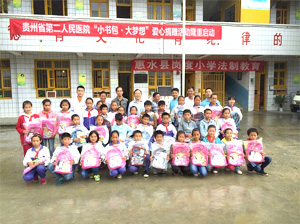 2015年8月21日,动启动仪式。“小书包,大梦想”大型公益活动启动仪式于贵州省第二人民医院隆重举办。贵州省耳鼻喉科医长周曹副院长针对公益活动作出了重要发言。并开始接受爱心捐款及物资捐赠。