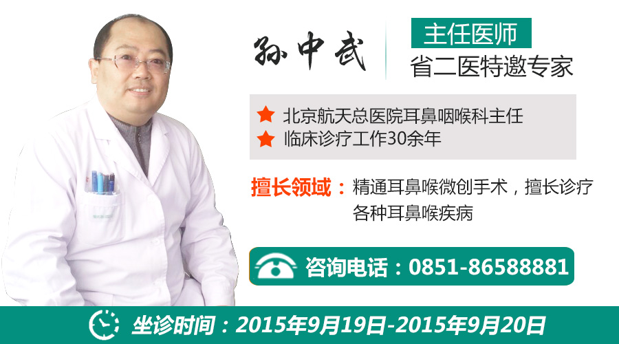 值此公益援助之际,贵州省第二人民医院特别邀请北京航天总医院耳鼻咽喉科主任、鼻科及耳科专家孙中武到我院亲自坐诊,以促进耳鼻喉超微创可视化治疗更加规范化,让更多的耳鼻喉患者在最短的时间内得到理想的治疗效果。